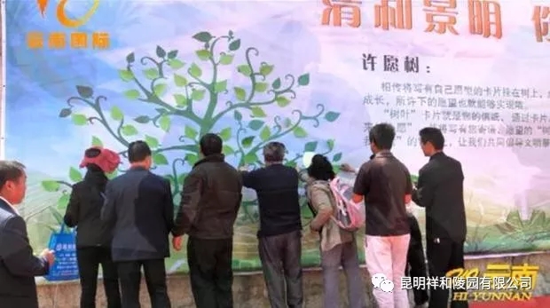 除許愿樹外,昆明祥和陵園還不斷引進新的祭掃方式,推出“鮮花換燒紙”、“黃絲帶寄哀思”、“祈福牌位書寫”等活動,吸引許多市民前往參與。